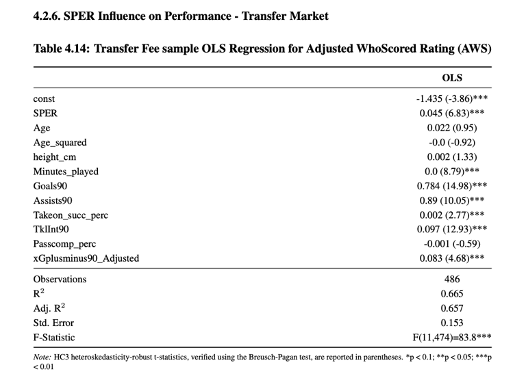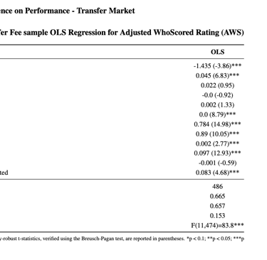 This significant influence on performance outcomes, when taking the average transfer fee from the sample, would represent approximately €800,000 of each fee. Thus, with no corresponding fee premium in the sample, it may represent an exploitable market pricing inefficiency.